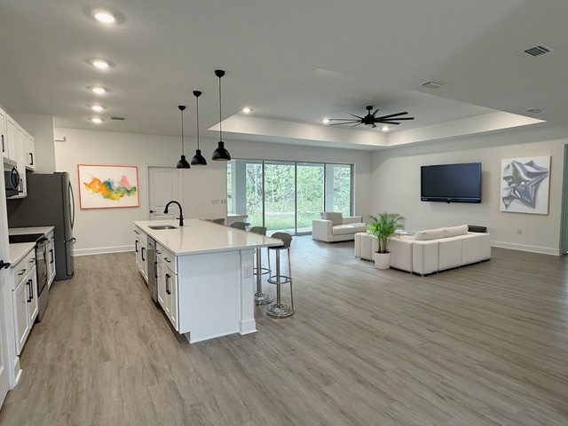 The Jubilee is a single level floor plan featuring open concept living, luxury kitchen, covered lanai, private owner's suite, and three car garage - ideal for any family.
